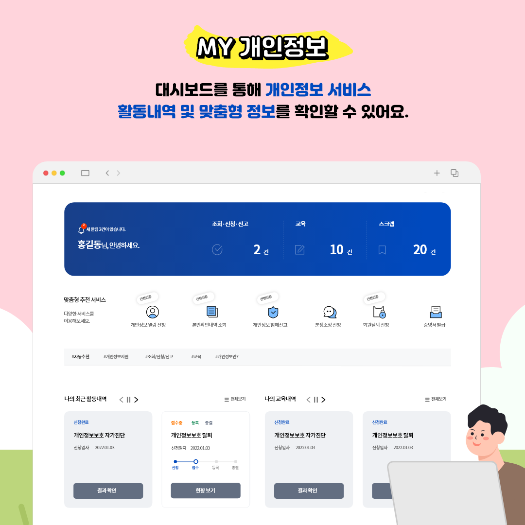 오늘 하루 10분, 개인정보보호 종합포털을 방문하는 것만으로도 내 정보는 훨씬 더 안전해질 수 있습니다.