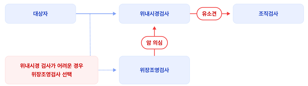 - 당일 아침 공복 유지: 물, 커피, 담배, 껌도 금지