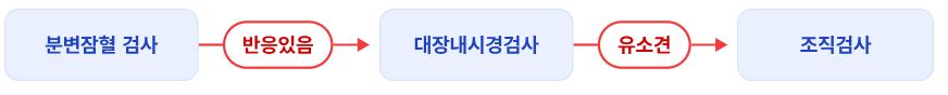 - 대장암 : 만 50세 이상 (매년 1회, 분변잠혈검사) 분변잠혈검사 결과 이상 시 대장내시경 추가 실시 가능