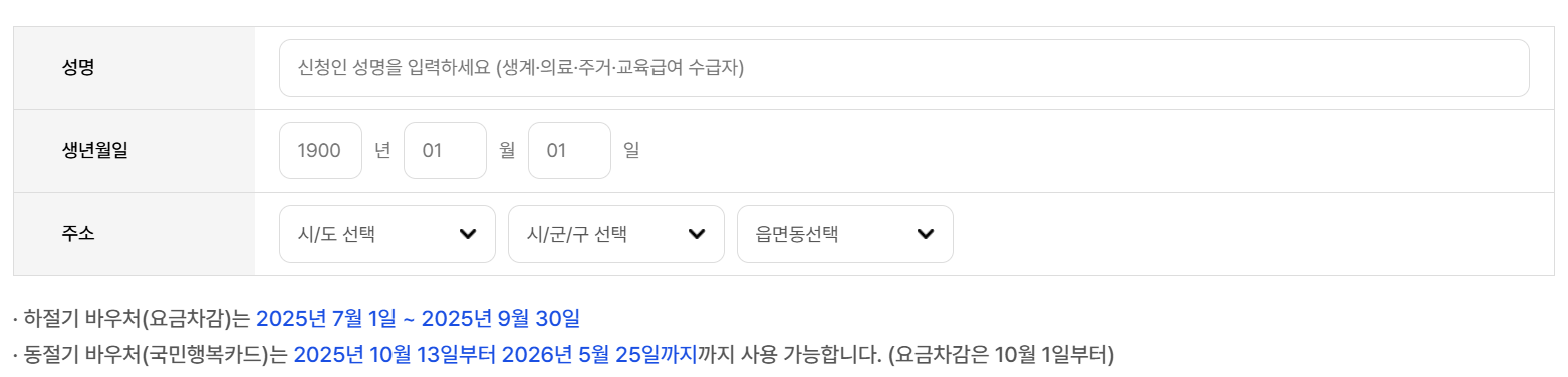 - 하절기바우처(요금차감) : 2025.07.01~2025.09.30