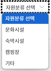 - 카테고리 선택 (회의실, 체육시설, 캠핑장 등)