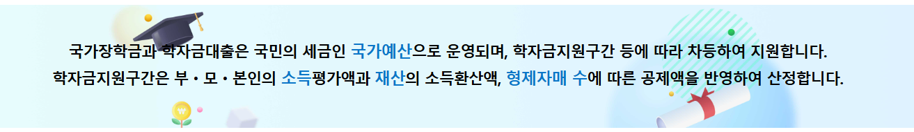 - 형제/자매 등 대학 재학 중인 가족 수에 따라 구간 조정될 수 있음