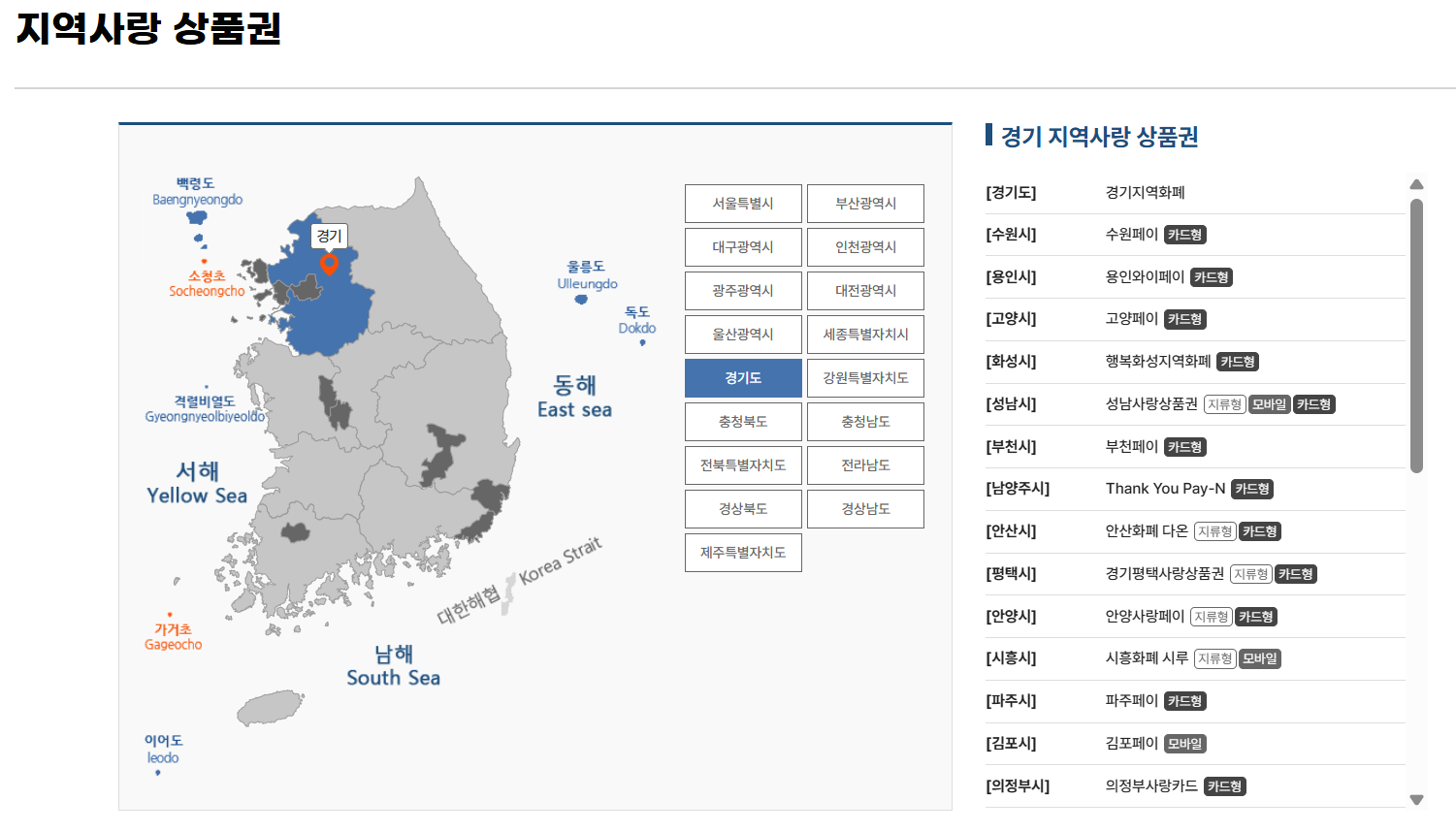 지자체별 지역사랑상품권 앱 또는 누리집 접속 (예: 경기지역화폐, 대전온통대전, 전북전주사랑상품권 등 )
