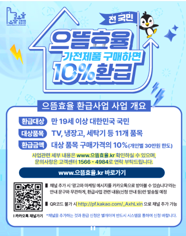 지금까지 1등급 가전제품 환급 신청방법·환급대상·환급금액을 정리했습니다. 이 글을 참고해서 놓치지 말고 꼭 신청하시길 바랍니다.